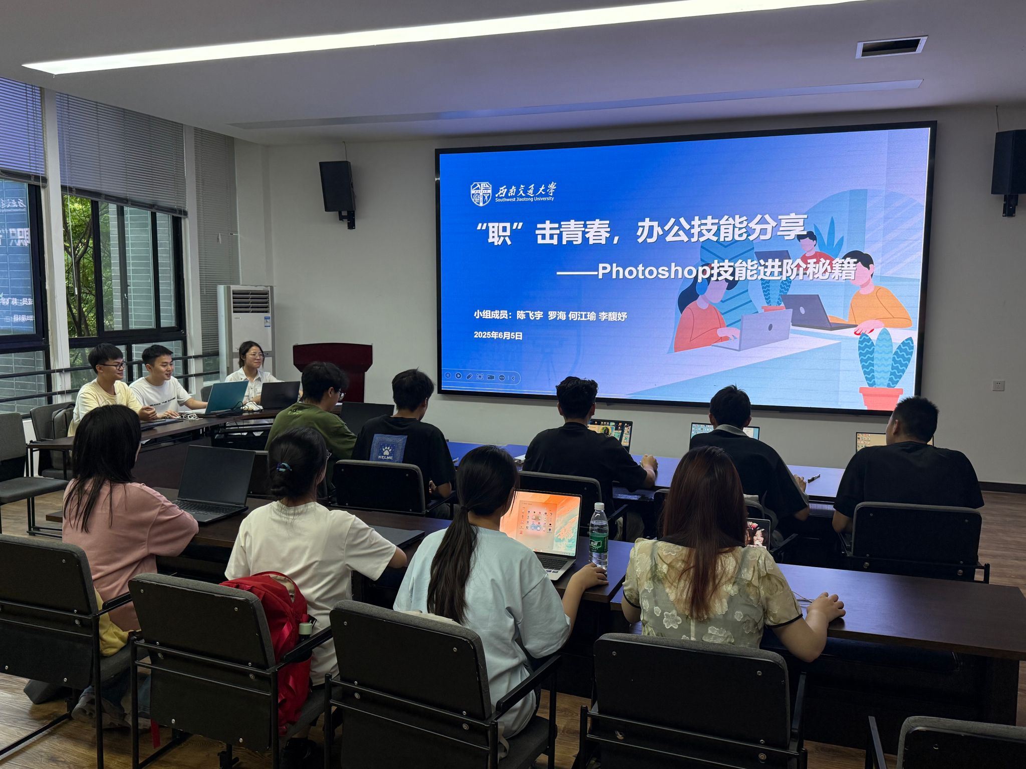2025年6月5日晚19:30,第三期“职”击青春办公技能分享会在X4407A顺利召开,陈飞宇小组和宋振昊小组分别就对于PS和WORD的学习开展了分享。陈飞宇小组从选区工具、图层蒙版等基础功能入手,深入讲解抠图技巧、混合模式应用,并通过“海报设计综合案例”串联知识点,演示从素材处理到创意合成的完整流程,帮助学员建立PS工具的系统化应用思维。宋振昊小组针对论文格式修改与公文排版需求,结合具体案例演示了快捷键批量调整格式(如Ctrl+Shift+N清除样式)、段落样式设置、自动目录生成等实用技能,并详细解读公文页边距、字体字号等规范要求,强化了学员对文档精细化处理的能力。
