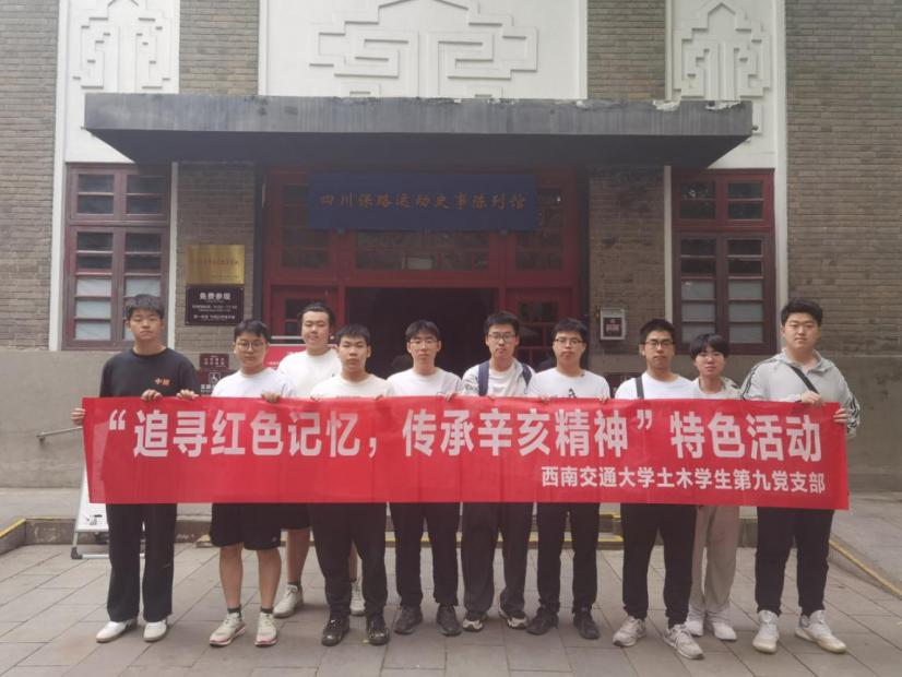 为学习领会习近平总书记关于加强党的作风建设的重要论述,巩固深化党纪学习教育成果,锲而不舍落实中央八项规定精神,扎实开展深入贯彻中央八项规定精神学习教育,进一步筑牢员工党员清正廉洁思想根基。土木员工第九党支部于9月6日开展“追寻红色记忆,传承辛亥精神”支部特色活动,依托成都人民公园的红色地标开展主题教育。