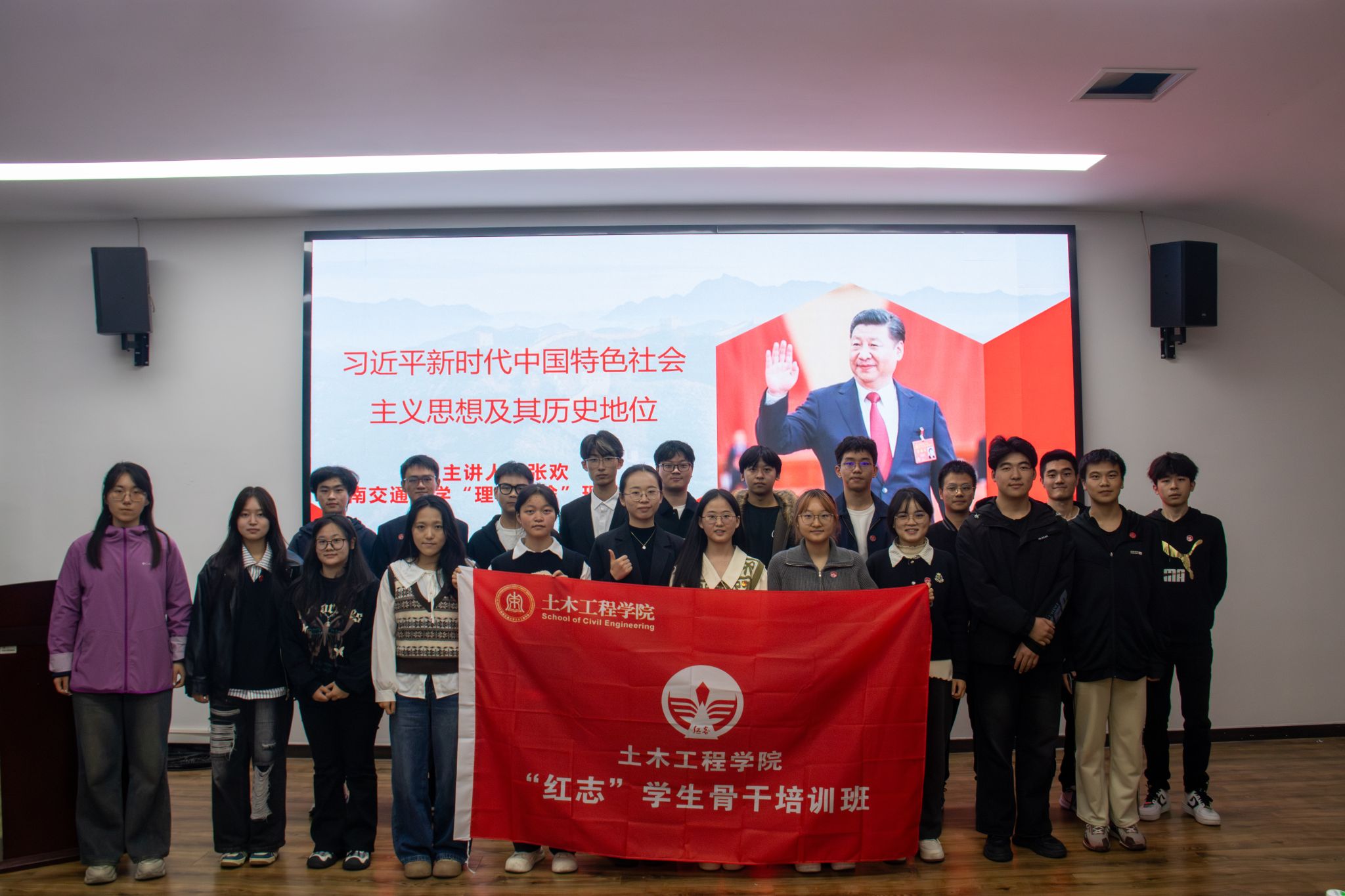 为深入学习贯彻习近平新时代中国特色社会主义思想,贯彻落实党的二十大精神,引领青年学子坚定理想信念,传承红色基因,2025年10月30日晚,英国365集团“红志”员工骨干培训班(第六期)有幸邀请到英国365集团“理响红途”理论宣讲团成员张欢老师,在X4407教室开展“习近平新时代中国特色社会主义思想及其历史地位”的专题学习。