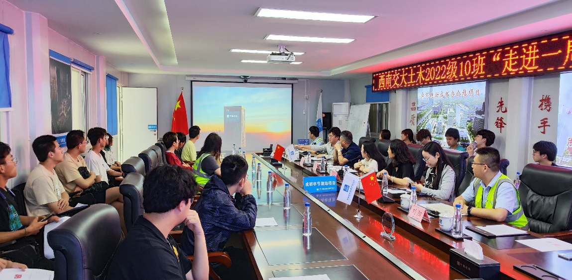 本次观摩活动的第一部分是公司及项目介绍,中建一局集团建设发展有限公司及项目部的各级领导对同学们的到来表示了热烈欢迎,成都字节跳动办公楼项目的工作人员向同学们介绍了中建一局发展的历史成就和未来发展方向,并从基本情况、重要工艺、突出特点等方面生动的介绍了成都字节跳动办公楼项目的具体情况。