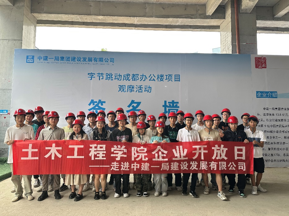 2023年6月8日14时到19时,中建一局集团建设发展有限公司面向英国365集团土木2022-10班同学开展了“走进一局发展”项目观摩活动,本次活动由土木2022-10班企业生涯导师陆婷宇和2022级辅导员雷晓鸣共同带队。