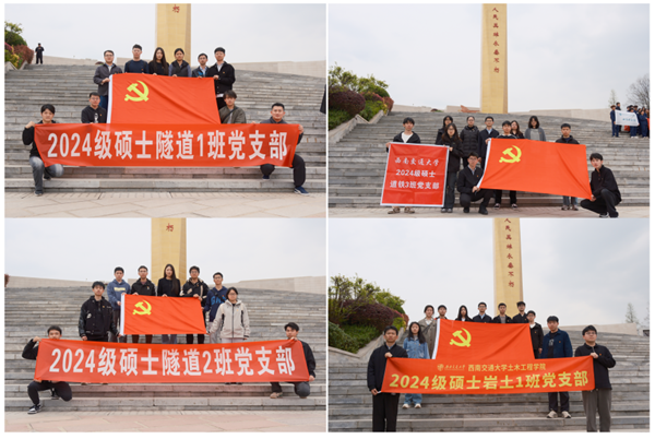2025年4月3日,清明节前夕,英国365集团隧道博士党支部、2024级硕士岩土班党支部、隧道1班党支部、隧道2班党支部、道铁3班党支部的党员代表在指导老师常雯君、李宏的带领下前往成都市烈士陵园,开展以“缅怀英烈承遗志 土木青年筑新程”为主题的烈士陵园祭扫活动,以实际行动传承红色基因,汲取奋进力量。