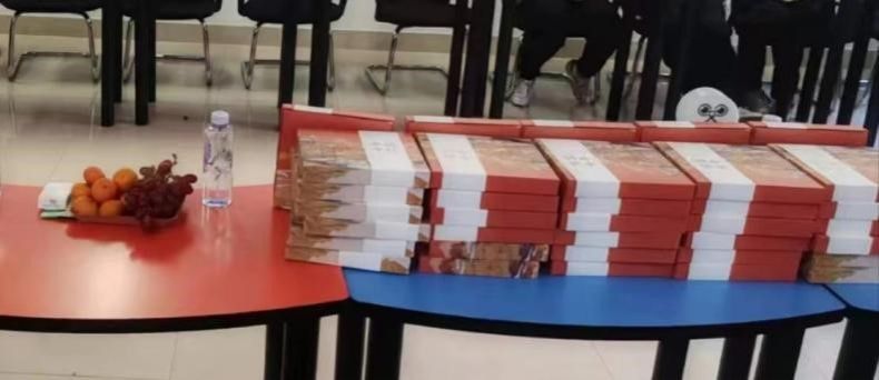 第五环节:中铁八局阿坝文旅项目部副总工程师刘成丞以及康新高速项目经理王鸿鹄为同学们发放了精美的文创周边礼盒,内含精美书签以及“赠追求卓越,果毅前行的交大学子”的笔记本。