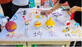 在本次活动中,同学们使用彩色颜料和画笔,在泡沫球上尽情挥洒创意,用色彩描绘内心的世界,用自己的无限创意诠释了心灵的色彩,让小球焕发出独特的光彩。志愿者们尽职尽责,精心布置活动现场,引导前来参与的同学将自己的内心所想以色彩的形式展现在一个个小球上,让一颗颗孤独的星球连结成一片交融的星海。
