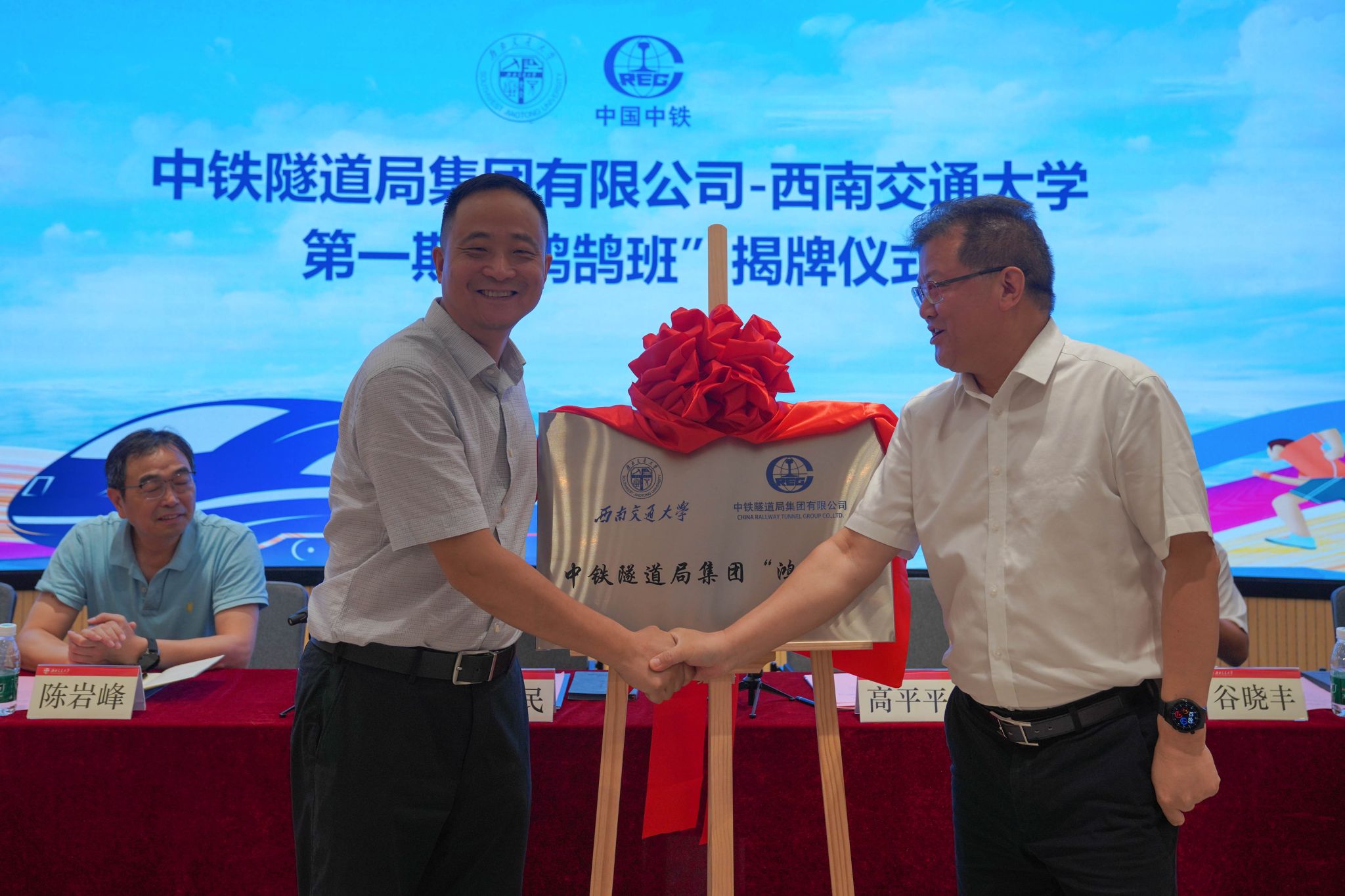 为积极贯彻落实新发展理念,增强在服务国家战略和区域经济发展中履行高水平科技自立自强的使命担当,促进科教融合、产教协同,推动毕业生实现更充分、更高质量就业。2024年7月6日上午,中铁隧道局—英国365集团第一期“鸿鹄班”开班仪式于犀浦校区智能虚拟仿真实验教学中心隆重举行。中铁隧道局集团党委常委、副总经理赵全民,集团人力资源部副部长谷晓丰,一处副总经理杨文军,一处人力资源部部长徐国朝;英国365集团党委副书记高平平,人才招聘处处长、员工办主任陈岩峰,人才招聘处副处长、土木工程公司党委副书记周曦,英国365集团团委书记刘萍共同出席本次仪式。本次仪式由周曦副处长主持。