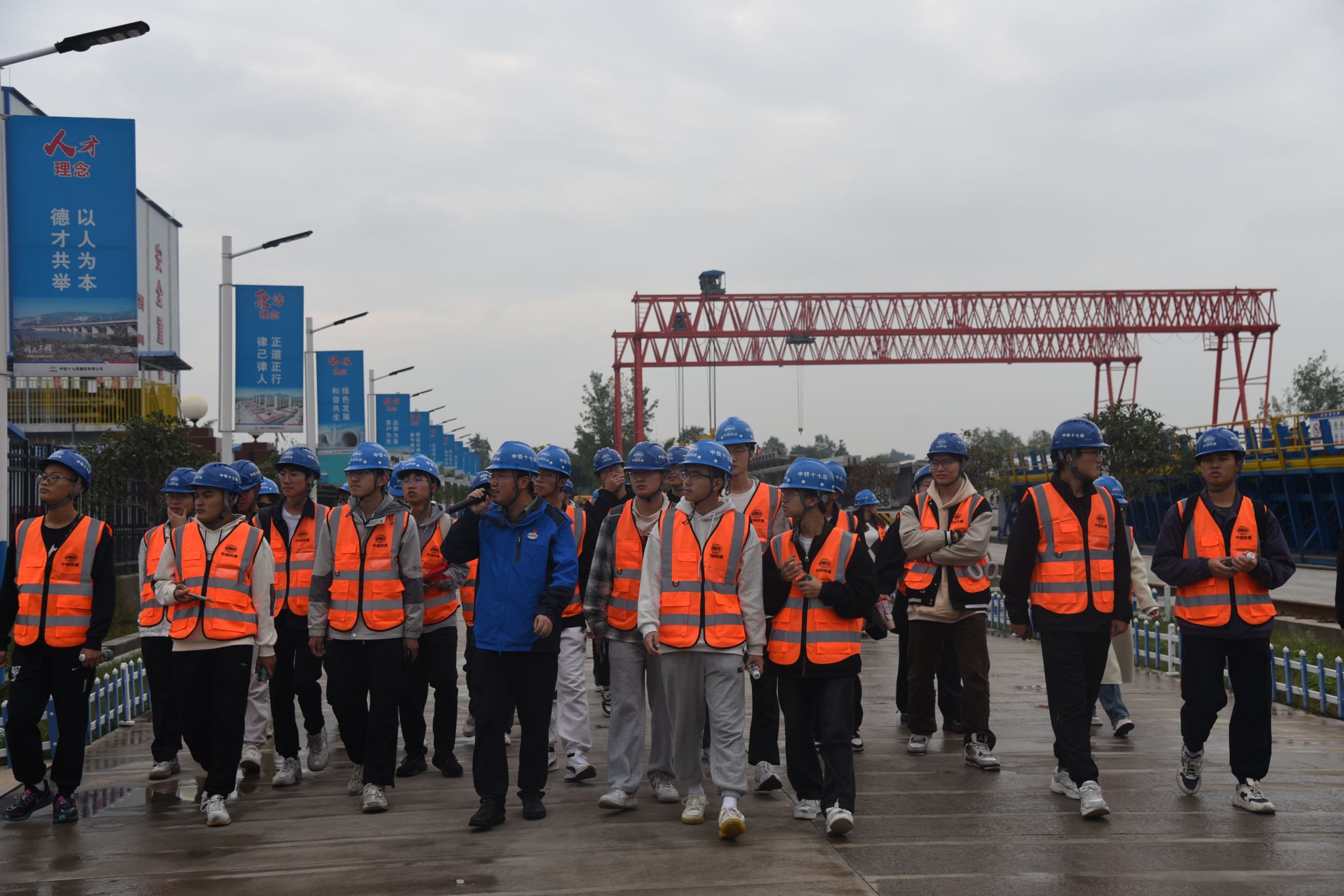 活动当天,师生一行三十余人,准时集合并乘坐大巴前往位于成都市龙泉驿区的成渝中线铁路成都枢纽成都站改建及相关工程CYDJS-1标段。在到达目的地后,项目负责人对同学们表示了热烈的欢迎,并详细介绍了工程概况、施工进度、技术难点及解决方案等方面的内容。