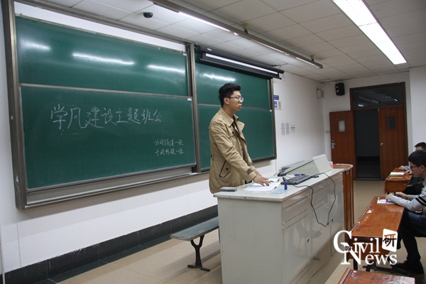 11月1日晚上七点,隧道1班和桥梁1班在逸夫馆4307A召开了以“学风建设”为主题的联合班会,本次班会由桥梁1班班长韩岳和桥梁1班班长徐建峰主持。桥梁一班和隧道一班的全部成员参加了此次会议。本次会议旨在提高同学们在“学风建设”上的积极性,鼓励班级同学“秀出自己的专精”。