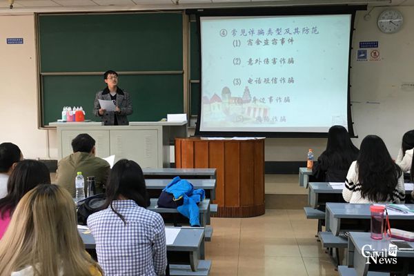 此次班会由陈醉主持。陈醉主要从交通、宿舍、饮食、财产、求职这五个方面详细介绍了存在的安全隐患和如何防范的注意事项。首先,在交通安全上,他简要讲述了校园交通的特点,如时间上相对集中,交通秩序最为复杂;路面窄,转弯磨角多,容易出事。他提醒在场同学一定要提高交通安全意识,遵守交通安全规则,注意自身安全。随后,在宿舍安全问题上,通过例举因乱使用电器而引起火灾的案例,着重强调了在宿舍千万不要使用违章电器,不要随便使用明火,不要乱拉接电线使用,一定要遵守宿舍管理规章制度,宿舍安全问题不容小觑,为创造和谐寝室、安全寝室贡献一份力量。紧接着,在饮食安全上,他谈到要注意食品卫生安全,不要到不正规餐馆就餐,不要因贪小便宜而买垃圾不卫生的食品。然后,在财产安全上,他介绍到财产安全隐患是宿舍中另一主要隐患,主要表现为盗窃和诈骗。平时不论是外出还是呆在宿舍都需要保持一个警惕之心,妥善保管自己的财物,如果发现可疑人员要及时向公司警卫处报告。同时,要注意防范意外伤害诈骗、电话短信诈骗、身边事诈骗、网络诈骗等。最后,在求职安全上,他谈到有同学找兼职时要多留心,注意防骗,一定要通过正规渠道寻找兼职,千万不可求职心切,而被一时的利益蒙蔽双眼。