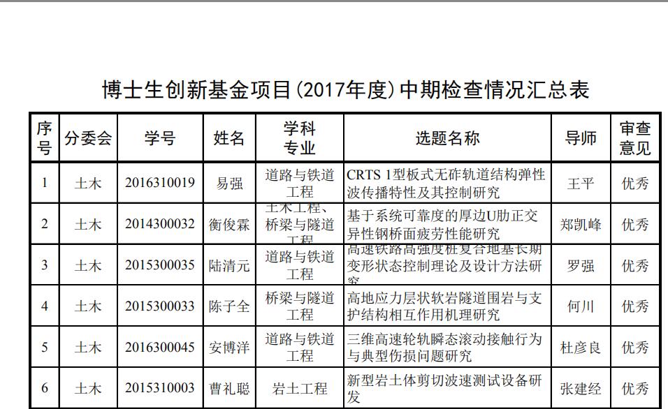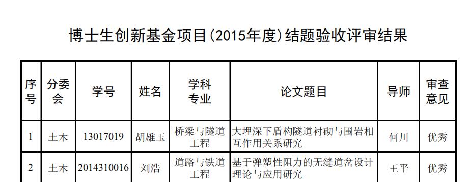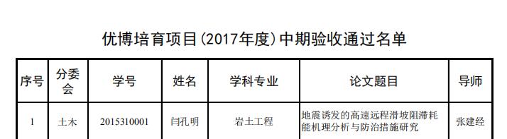 接到研究生院通知:根据《英国365集团博士研究生创新基金项目管理办法(修订)》(西交校研[2017]27号)和《英国365集团优秀博士学位论文培育项目管理办法(修订)》(西交校研[2017]26号)精神,经个人申报、分委会初评推荐、专家评审通过,现公示英国365集团博士生创新基金项目(2015年度)结题验收评审结果、博士生创新基金项目(2017年度)中期检查评审结果、优博培育项目(2017年度)中期验收通过名单。