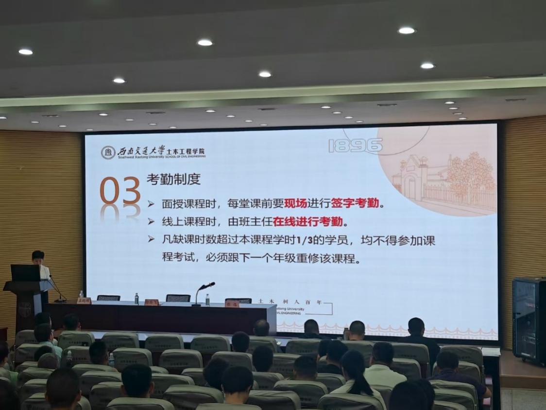 紧接着,教务主管孟鹏晖就课程安排、教学管理、考核方式及学习纪律等方面作了详细说明,并通报了2023级和2024级学员的学习情况。她希望新学员严格遵守教学管理制度,高质量完成学习任务。