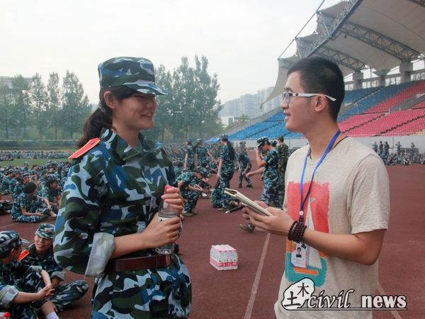 9月7日,在“纪念中国人民抗日战争暨世界反法西斯战争胜利70周年大阅兵”结束后4天,2015级的新生们仍在烈日下坚持军训。上午9时许,笔者来到了犀浦校区北区体育场,准备趁同学们休息的时候对方队的教官和标兵进行专访。