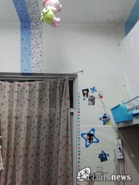 11班的046015寝室,他们的墙壁上贴了复古色彩的砖纹贴纸,寝室长许岳川说,这个贴纸象征交大的百年积淀。他们的天花板用的是夜晚可以发荧光月亮和星星,晚上可以营造一种温馨的氛围。在他们每个人的书桌内的墙上,都贴有励志的标语,鼓励自己积极向上,营造出了一股学习的氛围。许岳川还说到,他们寝室暂时还没有完工,他们准备在地板上铺上泡沫垫子以更体现家的感觉。除了这两个寝室,其他参评寝室的同学们也是煞费苦心,为的就是博得评比人员的认可。