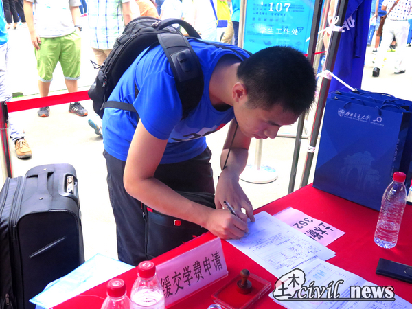 临近中午,来报到的新生越来越多,迎新点显得十分忙碌。报道注册、领取一卡通、领取新生大礼包和缓缴学费员工填写申请等地都挤满了人。虽然工作繁复、艰巨,但是各位工作人员都恪尽职守,一丝不苟地做着自己的工作。完成上述步骤后,各位新生在助辅的陪同下,顺利入住了今后四年属于他们自己的小窝。