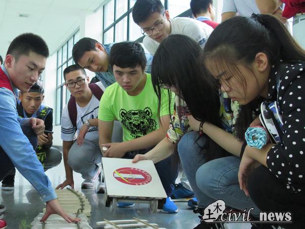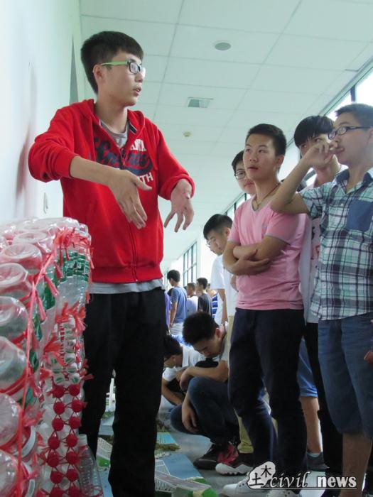 留影完毕,大家又走过大半个校园,来到土木工程试验中心,在实验室里进行了简单参观。