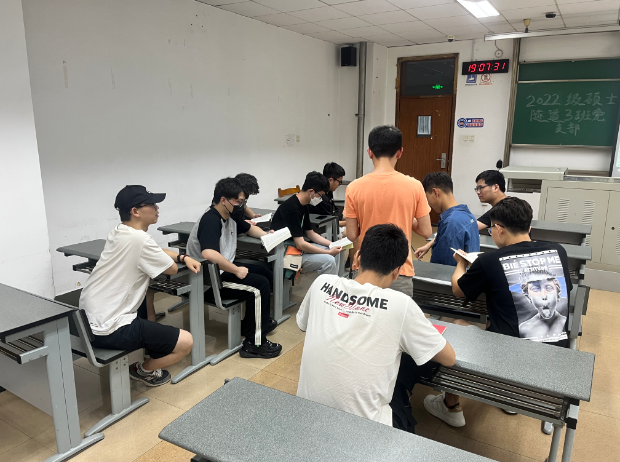 首先,书记简要说明了阅读,是获取知识、增长智慧的重要方式,更是传承文明、提高国民素养的重要途径。作为党员、干部和新时代有理想、有目标的青年要带头读书学习,修身养志,增长才干。我们要引导广大党员、同学在阅读中深刻感悟党的创新理论的思想伟力,积极开展好书荐读活动,形成引领示范带动作用。然后党支部全体党员认真阅读手中的书籍《习近平经济思想学习纲要》。随后进行了分组讨论,各小组选出代表汇报了读后感,其中曾文同志说到:“奋斗是青春最亮丽的底色,行动是青年最有效的磨砺。新时代青年应心系祖国,志存高远,立足实践,脚踏实地,在奋斗中创造精彩人生,为中华民族伟大复兴贡献出自己的青春和力量。青年要有理想,要坚定信念跟党走,坚定对马克思主义的信仰,坚定中国特色社会主义道路自信、理论自信、制度自信、文化自信,始终高举社会主义旗帜不动摇,不断提高自己的思想觉悟,以新时代的科学理论武装自己、指导实践。”
