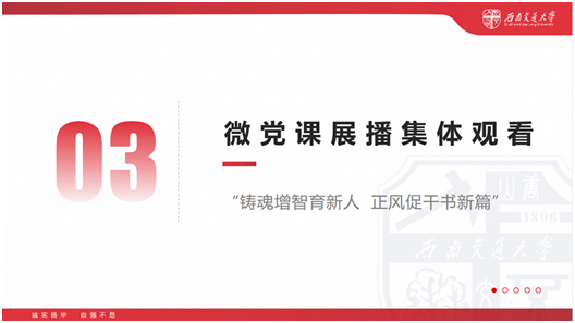 为全面展现教育系统主题教育突出成果,展现高校师生在新时代新征程中良好精神风貌,充分发挥高校先进基层党组织和先锋模范人物的示范带动作用,教育引导研究生党员自觉用党的创新理论成果武装头脑、指导实践、推动工作,2023年 7月7日,2022级硕士道铁1班党支部集中组织全体党员、入党积极分子集中观看了“铸魂增智育新人 正风促干书新篇”高公司党组织示范微党课展播活动。