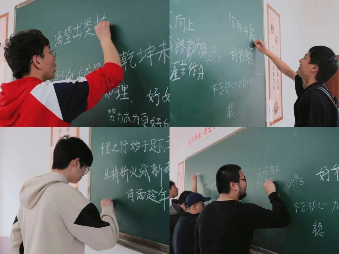 目前,第二期红土加油班已组建完成,同学们陆续到班开展自习,打牢学业基础。晚间自习时,党员帮帮团成员将前往自习室进行学业指导与帮扶。课余间,同学们在黑板上写下对自己及未来的期盼,激励自己全力以赴,拼搏到底!他们带着美好的希冀、昂扬的斗志与为时不晚的冲劲,乘风破浪,披荆斩棘!