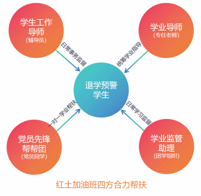 在一系列帮扶措施下,第一期红土加油班已于上学期顺利开展,最初进入班级的33位退学预警同学,有25人成功退班,退班率达到75.8%!红土加油班的 设立,不仅是帮扶后进员工解决学业困难,更是以唤醒学习觉悟与深挖学习动力为目的。总结第一期加油班中存在的优点与不足,汲取经验,优化细节,第二期红土加油班全新升级,强势归来!