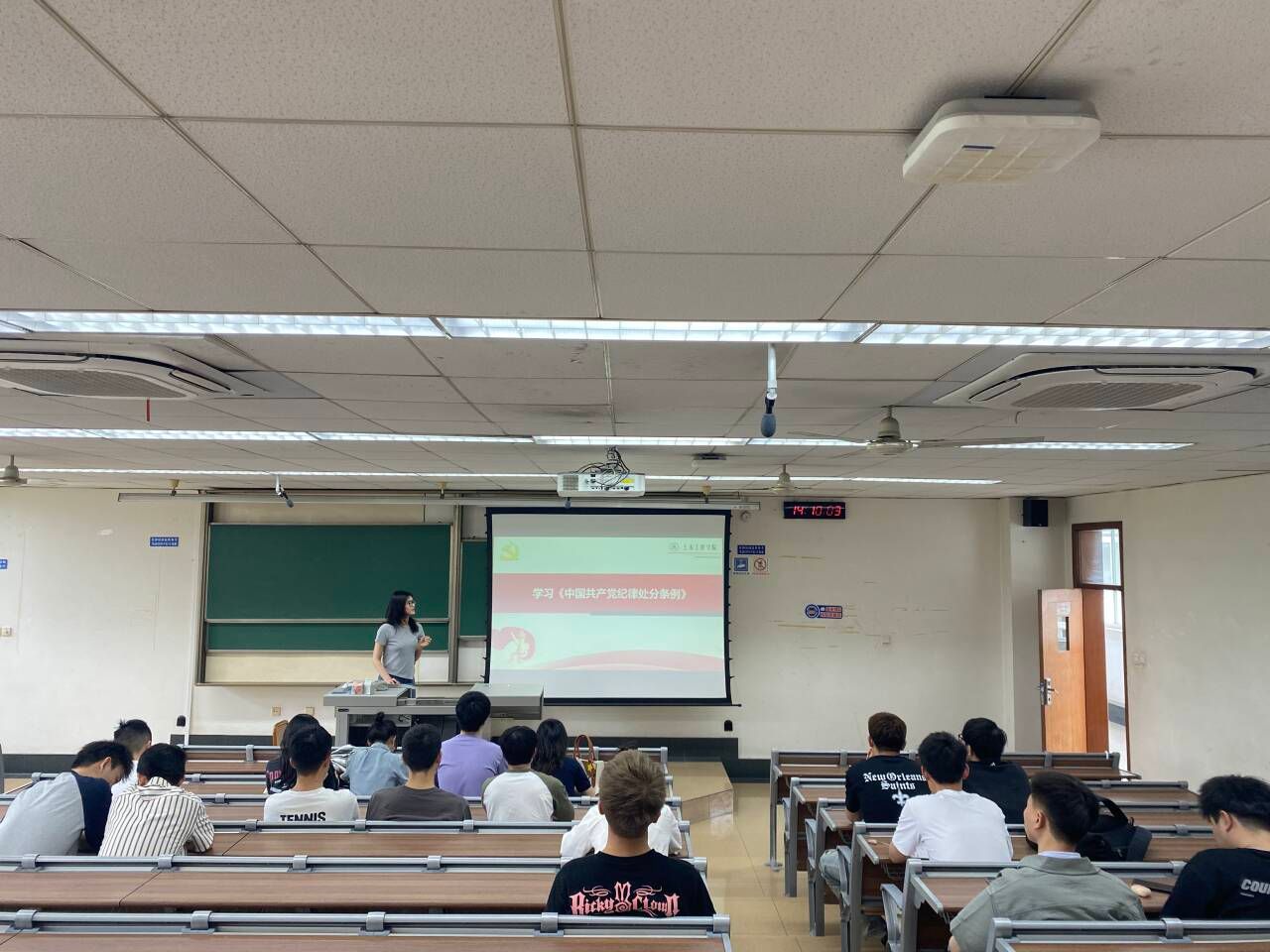 为深入学习习近平总书记关于党的纪律建设的重要论述,原原本本、逐章逐条学习《中国共产党纪律处分条例》,紧扣党的政治纪律、组织纪律、廉洁纪律、群众纪律、工作纪律、生活纪律进行研讨,推动《条例》入脑入心,2024年5月9日星期四,2022级硕士岩土1班党支部于九里校区4教4408开展2024年5月份主题党日活动。本次活动由党支部书记林荔榕主持,靳李辰、王志豪、张怡冰三位同志进行领学,参与活动的正式党员共13名。