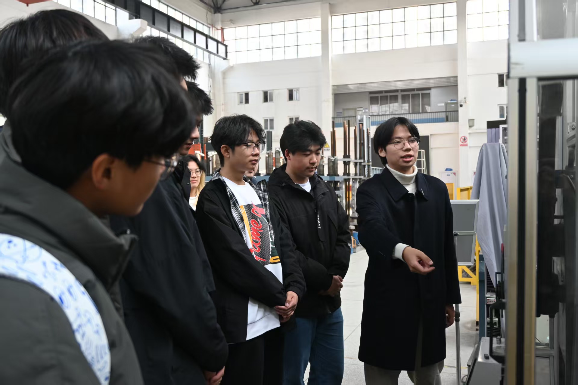 同学们还参观了示范中心其他力学试验设备,包括压力测试机、冲击荷载试验机、拉拔试验机等相关实验设备,并了解其具体试验用途。通过实验室老师的细致讲解与设备的直观展示,同学们不仅厘清了各类力学试验的核心逻辑,更深刻认识到实验数据对于工程设计、施工安全的关键支撑作用,进一步夯实了专业学习的理论基础。