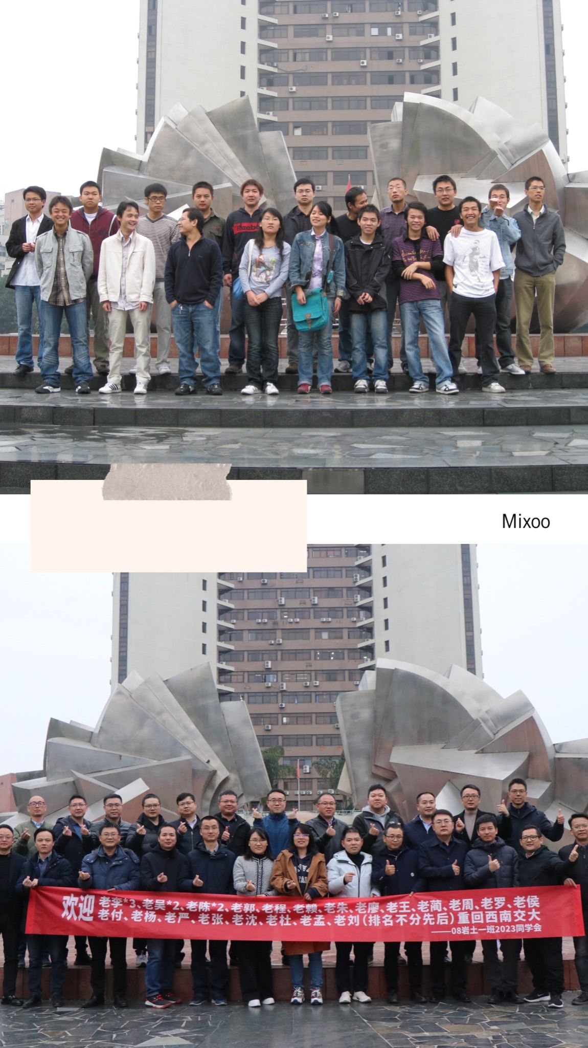 上午10:00,大家在九里校区南门合影留念,随后一行人漫步在熟悉的校园,庄严的图书馆、亲切的眷诚斋、美丽的镜湖、热闹的体育场,寻找当年的足迹的同时,也感叹母校的欣欣向荣与可喜变化,都感慨万千。下午14:00,大家来到九里1号教学楼1237教室畅谈,追忆似水年华。