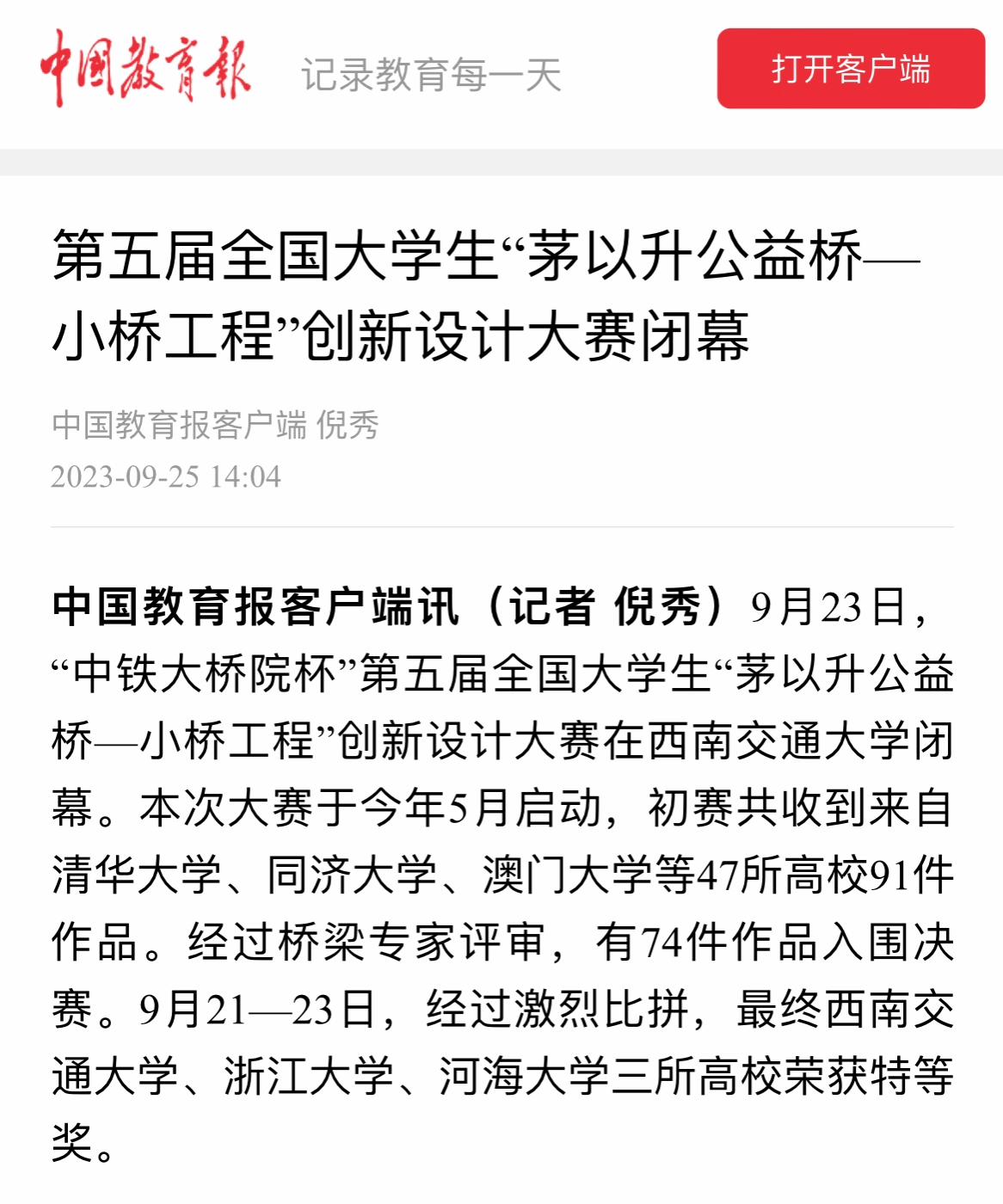 5. 【中国教育报】第五届全国老员工“茅以升公益桥—小桥工程”创新设计大赛闭幕