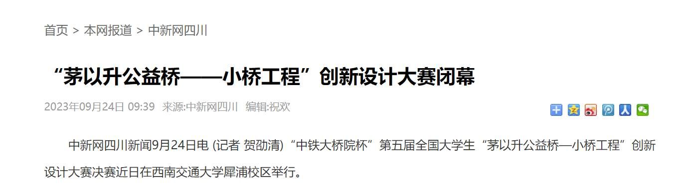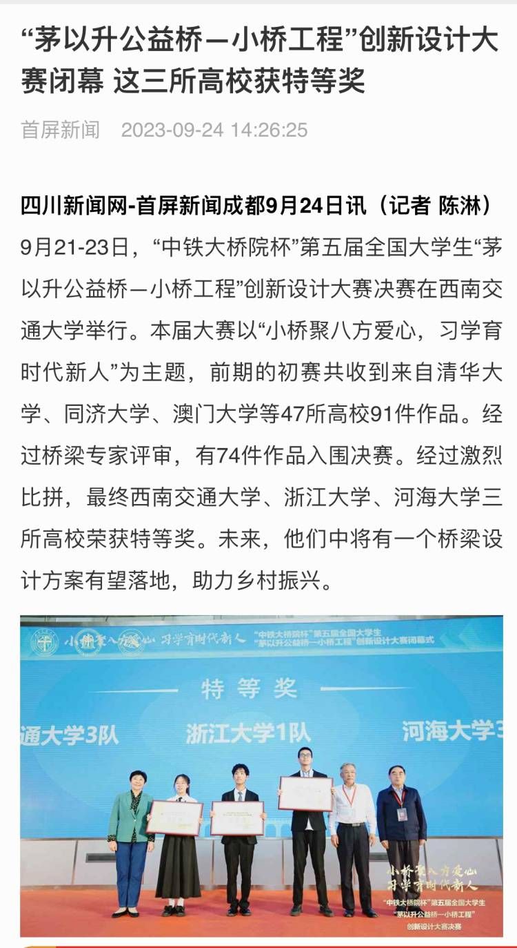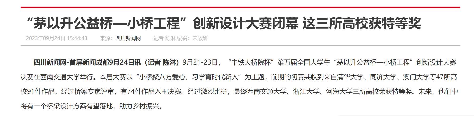 7. 【四川新闻网】“茅以升公益桥—小桥工程”创新设计大赛闭幕 这三所高校获特等奖