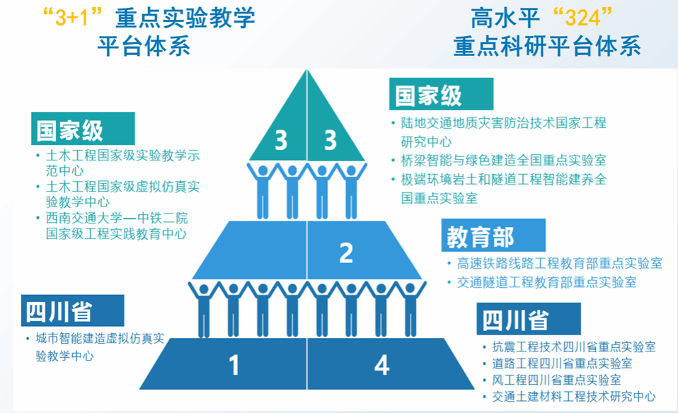 近年来,公司充分发挥现有的学科优势和平台优势,突出战略导向,配合新一轮的改革任务,积极打造科教融合、协同育人的创新平台。2021年,陆地交通地质灾害防治技术国家工程实验室成功纳入新序列,转建为陆地交通地质灾害防治技术国家工程研究中心。2023年,新增“桥梁智能与绿色建造”、“极端环境岩土和隧道工程智能建养”两个全国重点实验室,构建起国内领先、国际一流的“3国、2部、4省”重点科研平台体系。