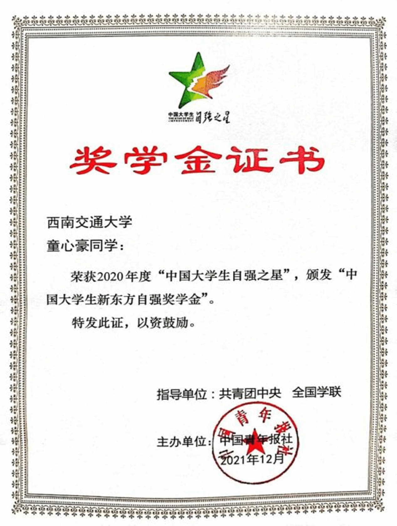 公司坚定不移用习近平新时代中国特色社会主义思想铸魂育人,获批教育部供需对接就业育人项目3项;公司官微入选“全国首批200个高校思政类公众号”重点建设名单;荣获2021年四川省关心下一代先进集体;公司团委荣获2021年四川省五四红旗团委、2021年成都市暑期“三下乡”优秀组织奖,获批“四川省高校名团干工作室”、土木2016级18班团支部荣获2020年“四川省五四红旗团支部”。