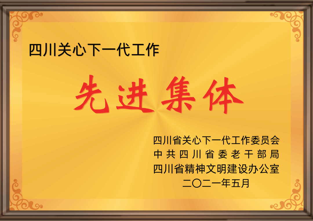 公司2021年荣获四川关心下一代先进集体