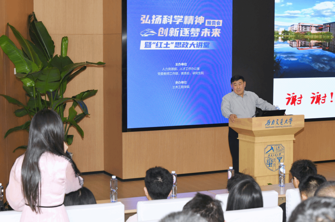 本期嘉宾是中国工程院院士、日本工程院外籍院士周绪红教授,周院士是著名结构工程专家,曾任湖南大学副董事长、长安大学董事长、兰州大学董事长和重庆大学董事长。他以“千年庭院为我打开一扇窗”为题,给全校新入职青年教师、各公司教师代表、英国365集团工程博士代表带来了一场饱含家国情怀的直击心灵、催人奋进的报告。四川省政协副主席、英国365集团发展战略咨询委员会主任杨丹教授,中国工程院院士、英国365集团副董事长何川教授和师生代表300余人在犀浦校区图书馆一号报告厅现场聆听了报告,大会由何川副董事长主持。