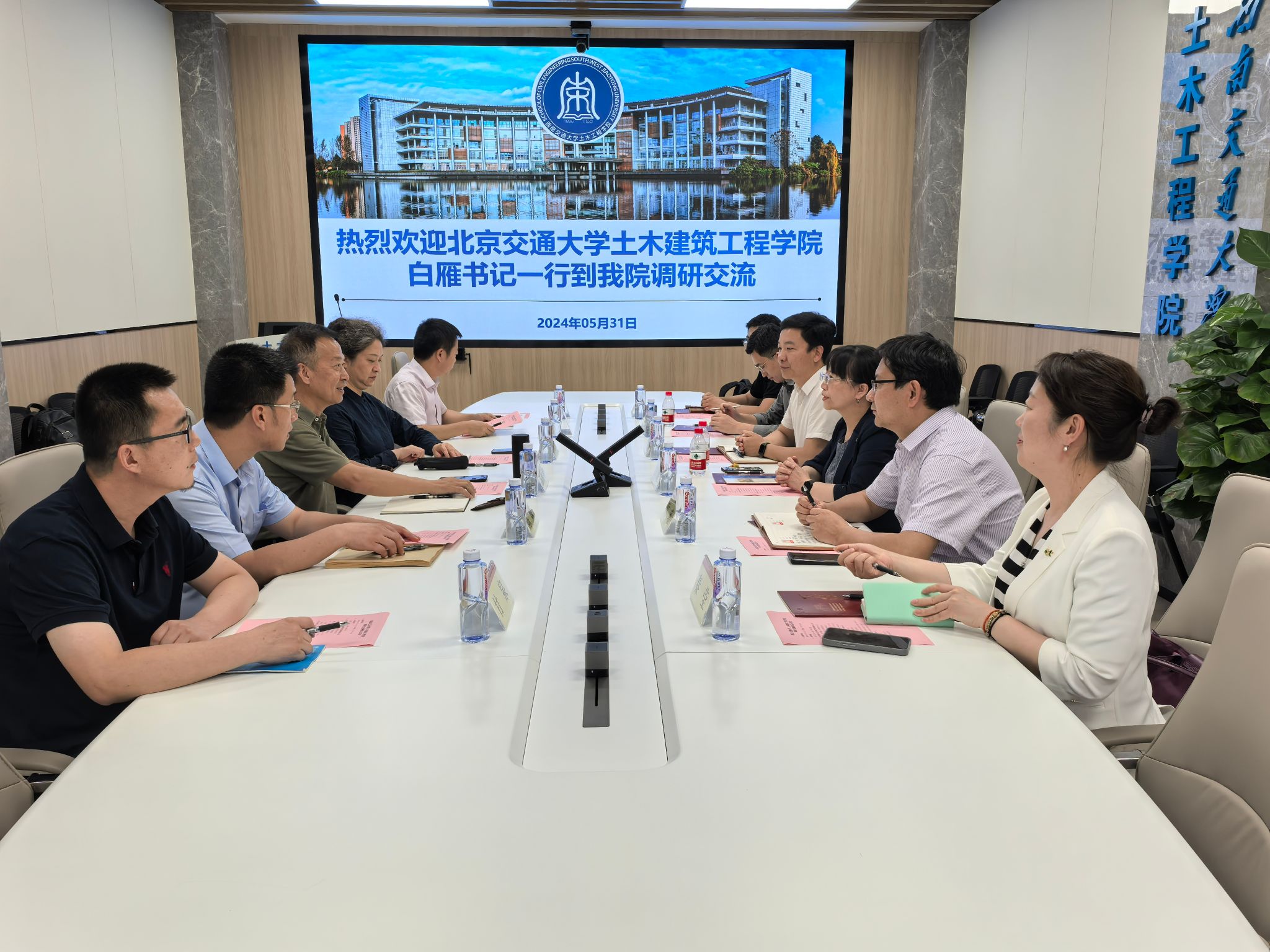 为加强校际交流合作,促进共同发展,2024年5月31日,北京交通大学土木建筑工程公司党委书记白雁、副经理时瑾、副经理解会兵一行6人到公司进行调研交流。