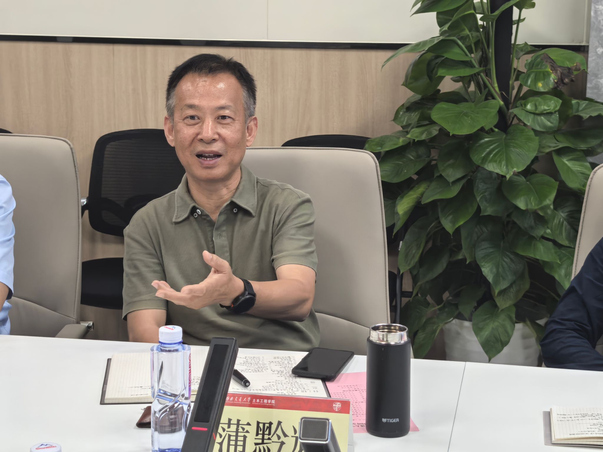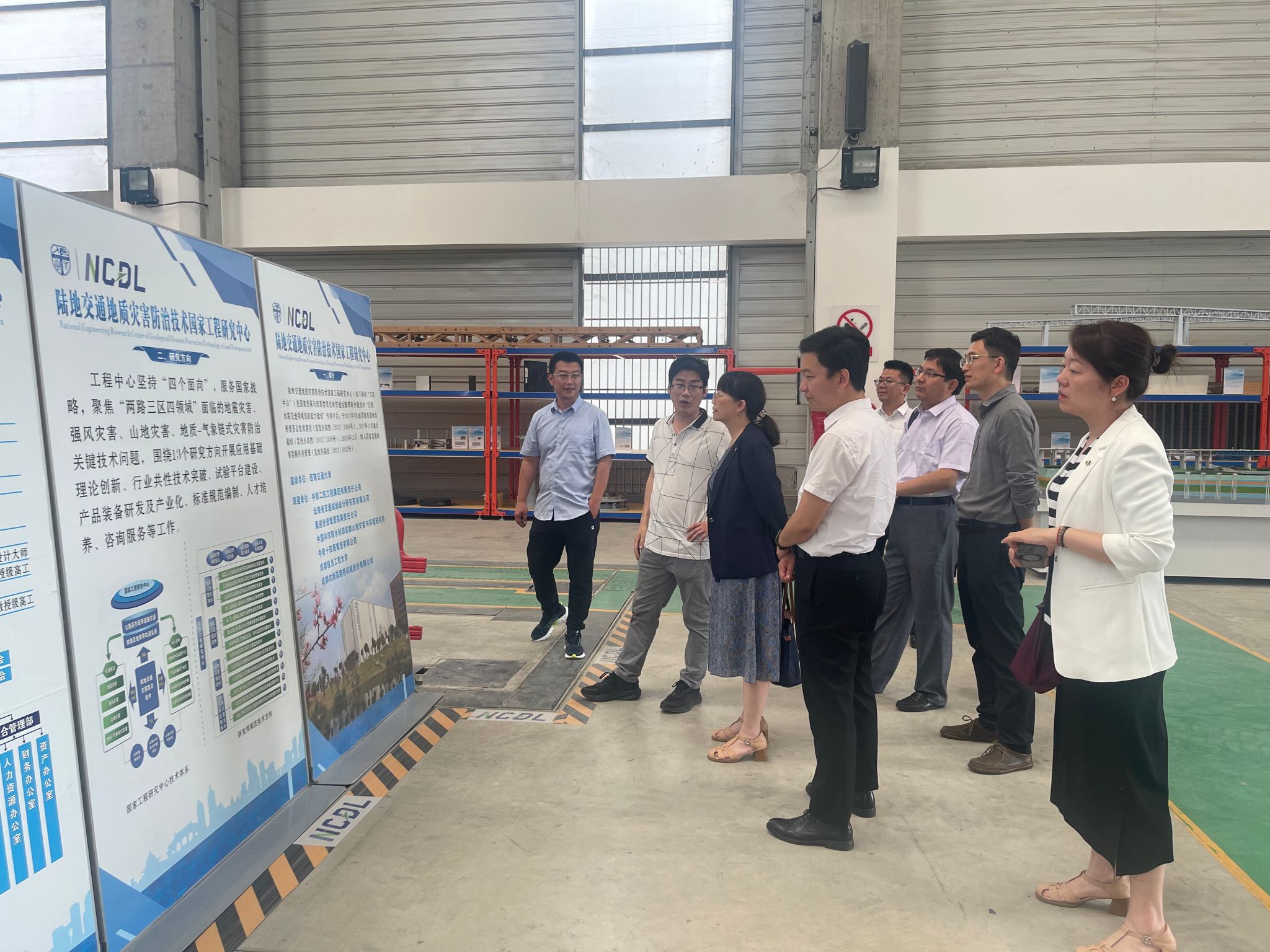 首先,调研团队到陆地交通地质灾害防治技术国家工程研究中心进行参观调研。作为国家级实验平台,国工中心一直致力于开展地质灾害预测预警、防治技术与工程实践等方面研究,国工中心副主任杨长卫详细介绍了中心的平台结构、科研成果、运行与管理机制等情况。