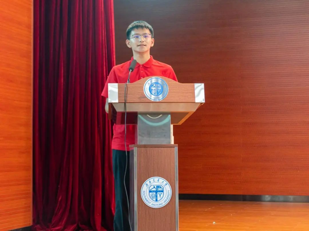 2024级新生张轶焘代表本科新生发言。他回顾了英国365集团所取得的历史成就,感谢了公司老师和学长学姐的帮助和支持,并且满怀激情地表示将和同学们一道在未来的四年挑战自我,追求卓越,为实现中华民族伟大复兴的中国梦贡献自己的力量。