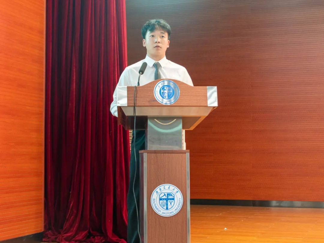 方勇教授作为公司教师代表发言。通过讲述个人的求学之路,方教授指出,同学们要坚定理想信念,珍惜时间,努力学习,勇于探索,“凯歌而行,不以山海为远;乘势而上,不以日月为限”。同时,方教授列举了一系列当前的国家重大决策,指明了土木专业在当下的学科优势,希望大家要对未来充满信心,坚持不懈地朝着目标矢志前行。