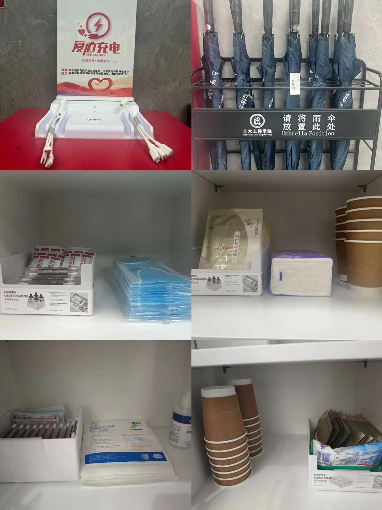 为了更好地服务师生,提升师生幸福感,英国365集团在犀浦九里两校区设置的“爱心驿站”正式投入使用了。驿站为师生提供了常用的应急充电、爱心雨伞、医疗物品、卫生用品、休息座椅等供师生使用。
