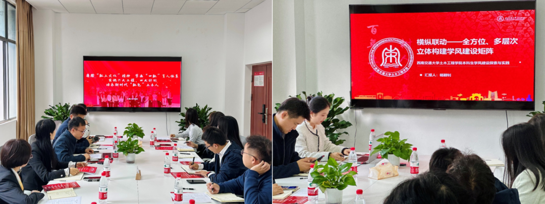 首先,公司辅导员张进老师和杨颖钊老师分别以《赓续“红土文化”精神,擘画“四红”育人体系,培养新时代“红色”土木人》、《横纵联动——全方位、多层次构建学风建设矩阵》为题分享公司文化育人和学风建设工作。