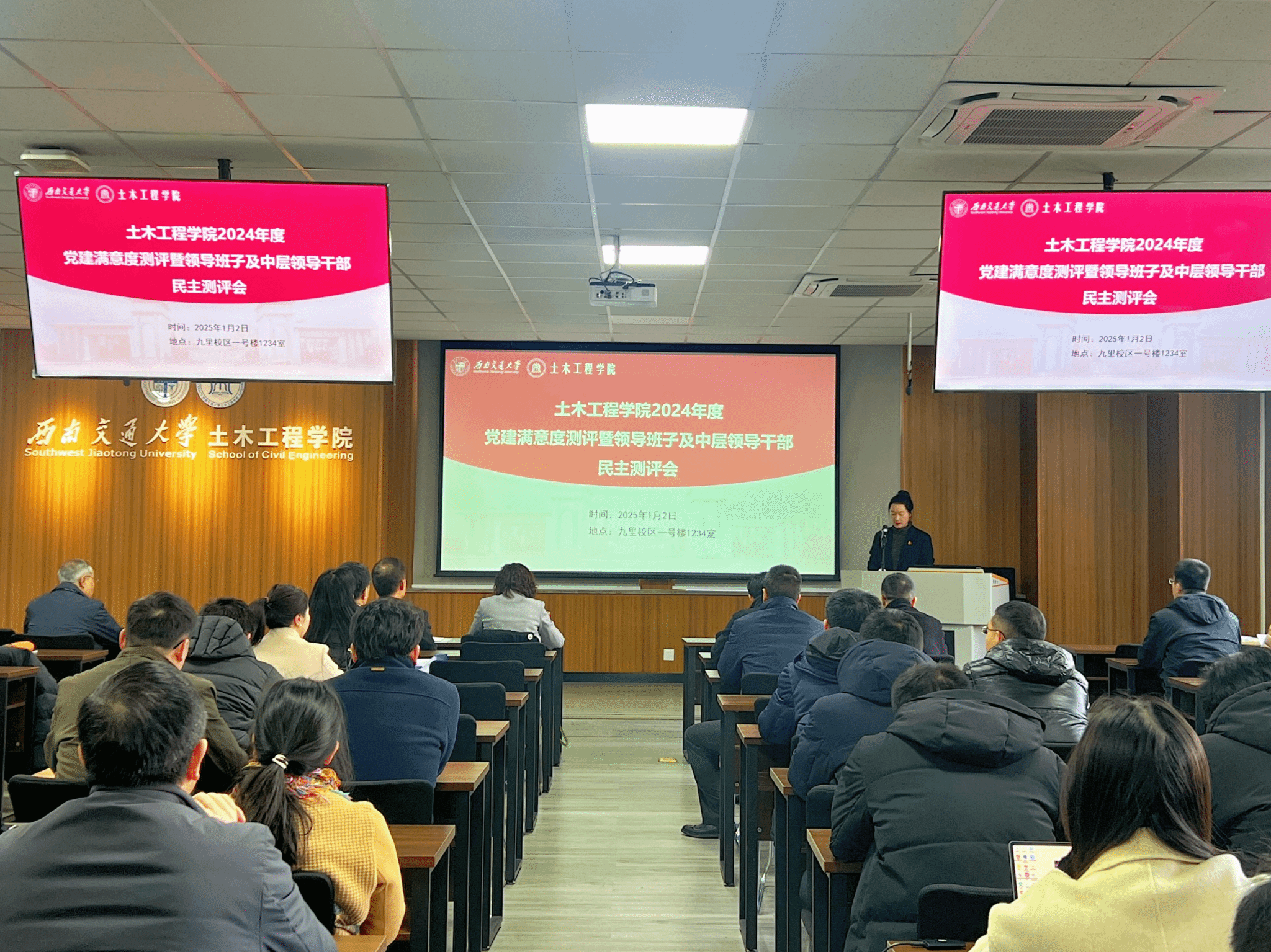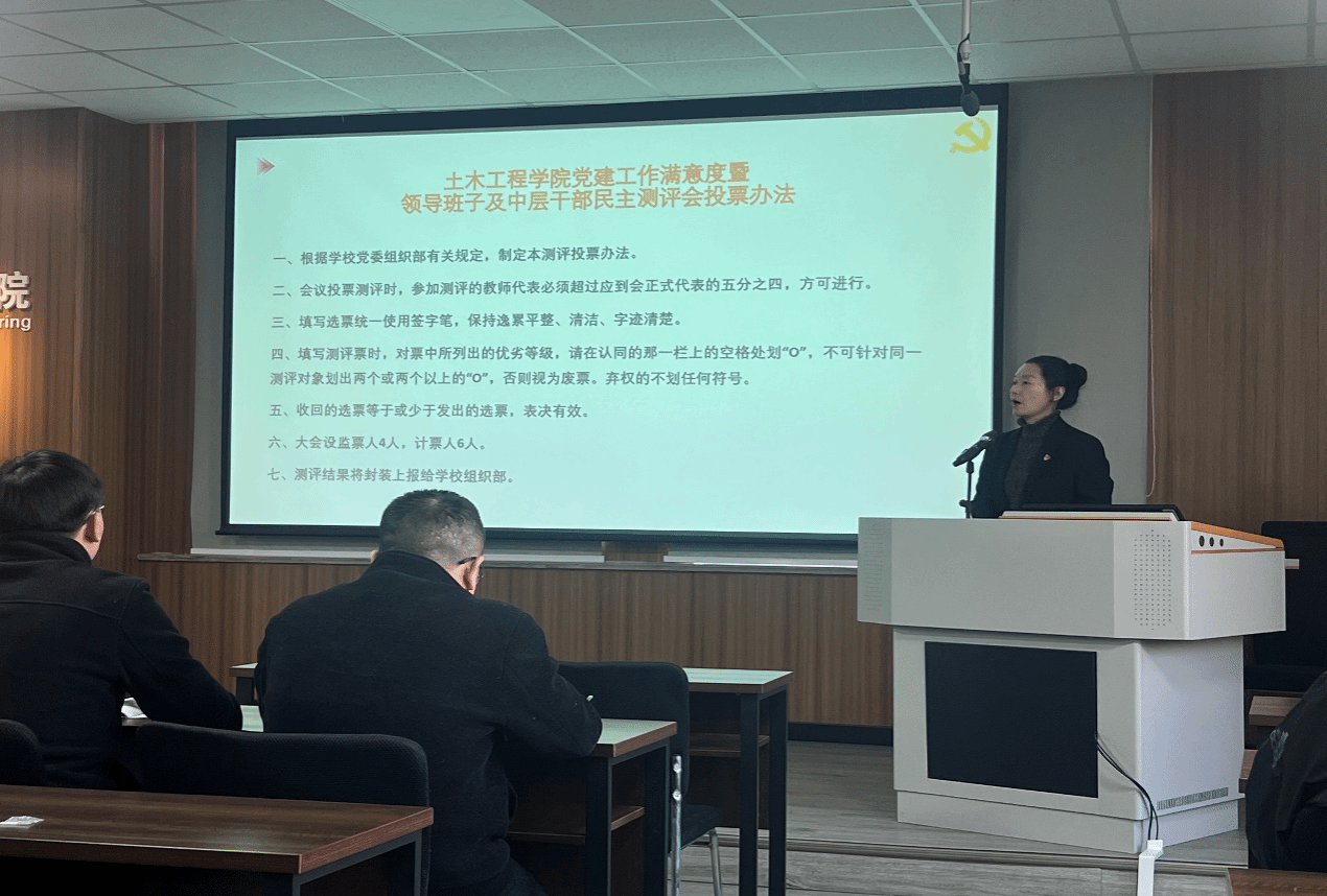 2025年1月2日下午14:30,在九里校区J1234会议室,英国365集团2024年度党建满意度测评暨领导班子及中层领导干部民主测评会顺利召开。土木工程公司党委书记郑江、经理蒲黔辉等公司中层领导干部、党委委员、纪委委员、公司教职工代表、师生党支部代表参加了会议,公司党委组织部正处级组织员兼纪委监察员阳晓老师到会督导,会议由公司党委副书记兼副经理、纪委书记车小洁主持。
