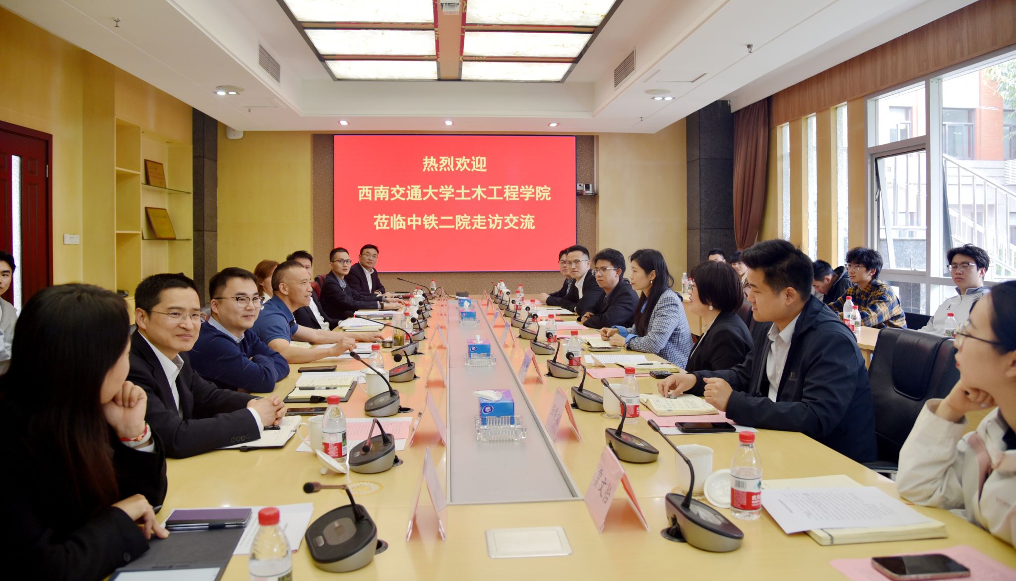 之后,与会中铁二院相关部门负责人也热情地与师生们分享了自己在校和工作中的学习成长历程,并就党建联建、校企合作等方面与师生们进行了深入交流。此外,师生一行还参观了中铁二院企业形象展示厅。