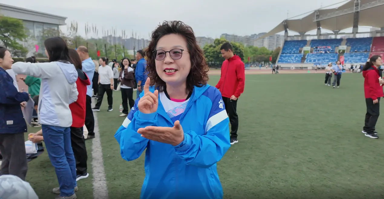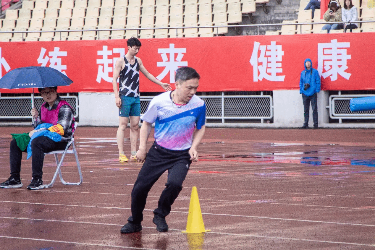 记者在60米绕杆跑比赛后采访到了潘毅教授。潘毅教授表示,对本次运动会最深的感受就是快乐,因为运动带来健康,健康带来快乐。虽然自己刚从西藏回来,加上赛道比较湿滑,不敢迈开步子跑,但参与到比赛中就感觉很快乐。