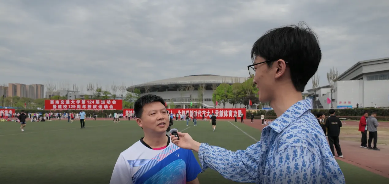 铅球比赛结束后,记者采访到了桥梁工程系主任李永乐教授。谈到参与铅球项目的感受,李永乐教授说:“我们平时进行强度比较大的脑力活动后,适时的运动能对我们的身心起到极大的放松作用,校运会就是一个很好的机会。”