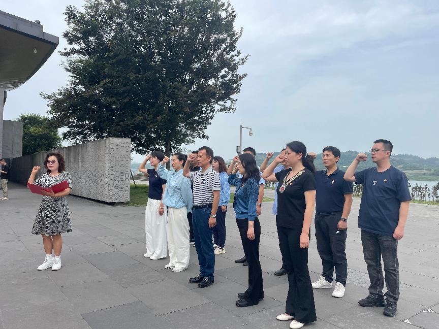 全体党员在李庄抗战博物馆广场进行了庄严的重温入党誓词。