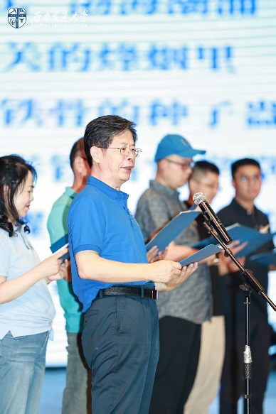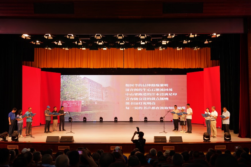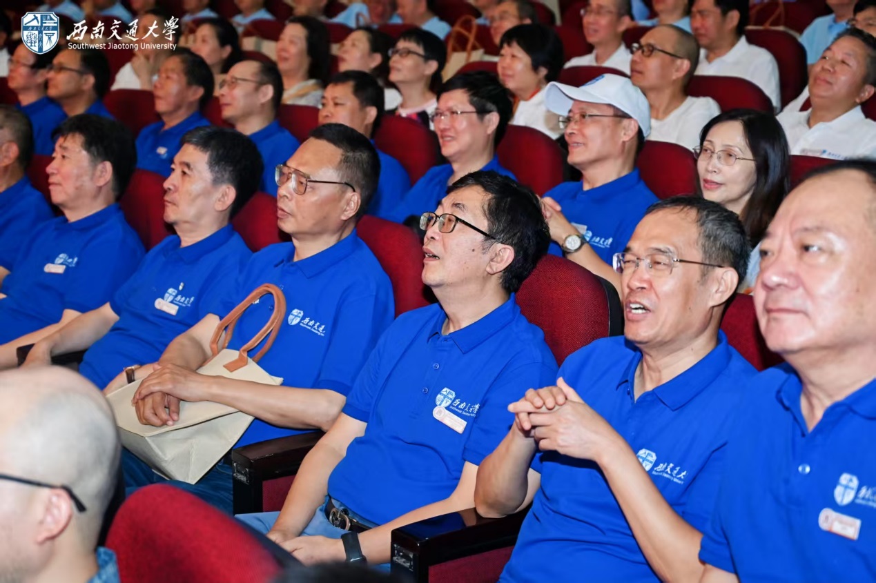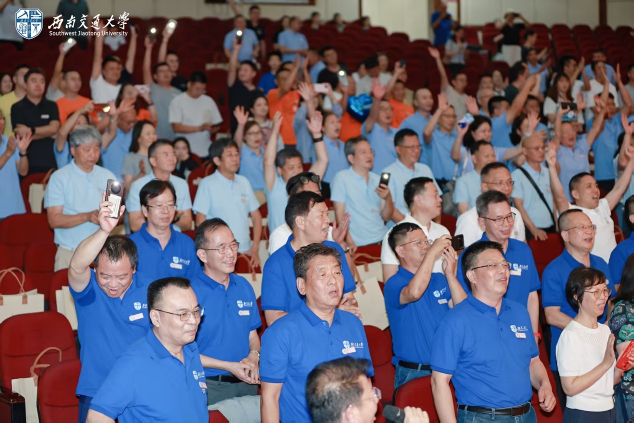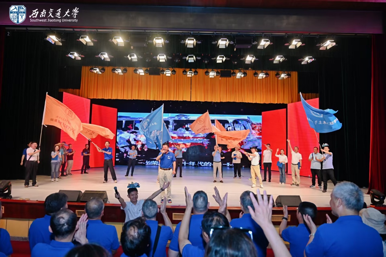 随后,12位来自1981级桥梁、铁道、隧道、工民建各专业,1990年代、2000年代、2010年代和2020级历届土木员工代表,集体朗诵了1981级桥梁专业庄勇原创诗歌《栋梁赞歌——跨世纪交大人的光阴答卷》。“报国寺的晨钟敲醒黎明,中山梁跑道的汗水浸满足印,青春随奋进的鼓点擂响”“若光阴逆流而上,若青春再度启航,我们仍会,义无反顾,选择交大;以山为砧,以血淬火,用生命锻成中国铁路最坚韧的钢梁!”赞歌齐诵,回荡会场,每一句都是交大土木人团结一心、奉献社会的精神传承,激荡起全场对行业使命的共鸣与自豪感。