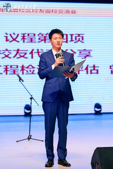 交流会由2012级工程检测与结构评估专业曾泽宇和田琛嘉员工主持。员工首先观看公司精心制作的回忆视频,一帧帧黑白与彩色的画面,从峨眉山脚下的校园风光到员工时代的青葱岁月,将员工们的思绪拉回至往昔的课堂和生活,会场内掌声迭起。