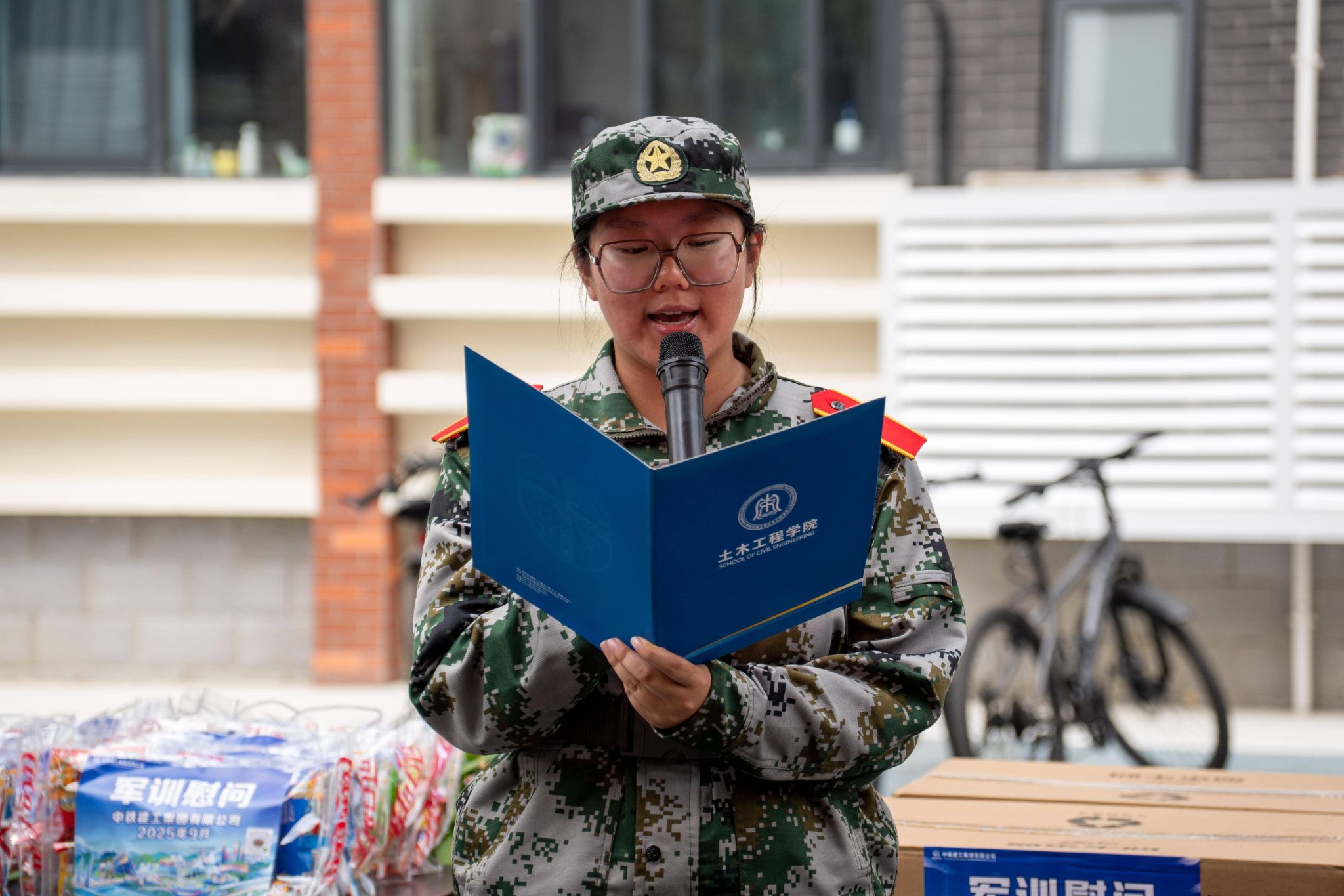 郑江书记代表公司对中铁建工集团的暖心支持表示衷心感谢。她强调,此次慰问既是对同学们军训表现的肯定,更是对大家未来成长的殷切期盼。正如9月3日阅兵式上所展现的国之重器与钢铁长城,背后是无数建设者与守护者的汗水与智慧。郑江书记回顾了公司秉承“竢实扬华、自强不息”精神所取得的成就,勉励新生传承土木人优秀传统,以阅兵精神为镜,锤炼意志、强健体魄、精进学业。