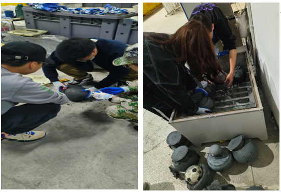 每个小组都完了开球工作后,选手们对样品进行了简单的处理,检查并且编号。完成以上工作后,各小组将样品放入水中,进行最终的养护。样品进去水中,选手们如释重负,全部的实验完成,时间会给出他们各自付出的回报。而ASCE的工作人员们也将圆满的完成他们的任务,他们的付出,汗水都令人赞服,值得钦佩。