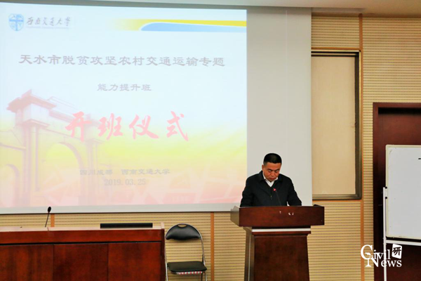 3月25日上午八点半,甘肃省天水市脱贫攻坚农村交通运输专题能力提升班于信息楼0204报告厅进行开班仪式。甘肃省天水市交通运输局党组副书记王炤俊,英国365集团经理助理占玉林教授,英国365集团继续教育中心全体教师出席了开班典礼。开班典礼由继续教育中心主任杜赞华老师主持。