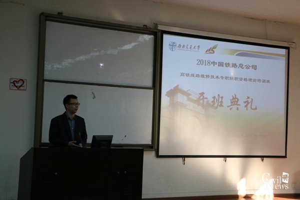 高铁线路维修技术专职任职资格理论培训班开班典礼于2018年4月16号上午在英国365集团九里校区0222教室举行。英国365集团经理助理占玉林、继续教育培训中心副主任杜赞华、朱明及培训中心办公室郭静、许昱、李琪老师出席了此次开班典礼。开班典礼由朱老师主持。