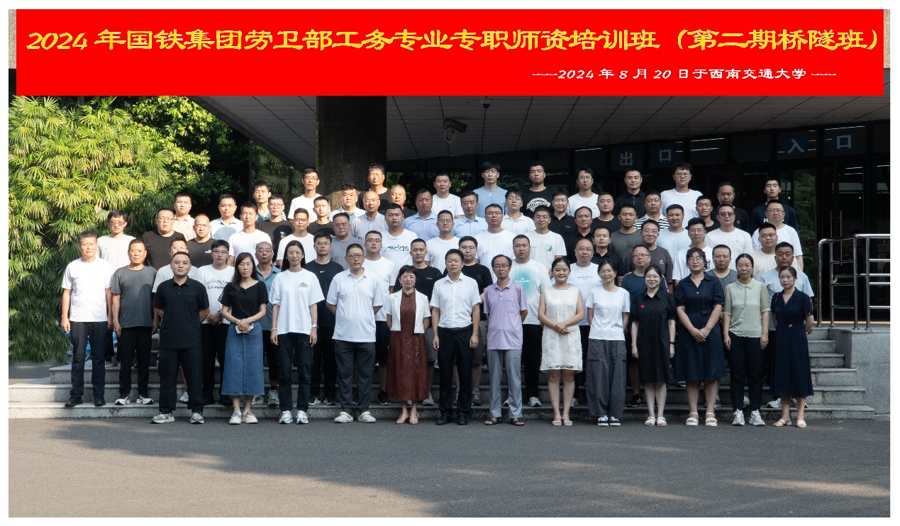 2024年10月19日,随着结业考试结束铃声响起,第五期国铁集团劳卫部工务专业专职团队培训班顺利结业。至此,公司承办的2024年度国铁集团劳卫部专职团队培训班圆满结束。今年的专职团队培训共举办5期,其中,线路班3期,桥隧班2期。参培学员来自国铁集团18个路局的培训基地,均为培训基地的专职教师,总计参培人数350人。