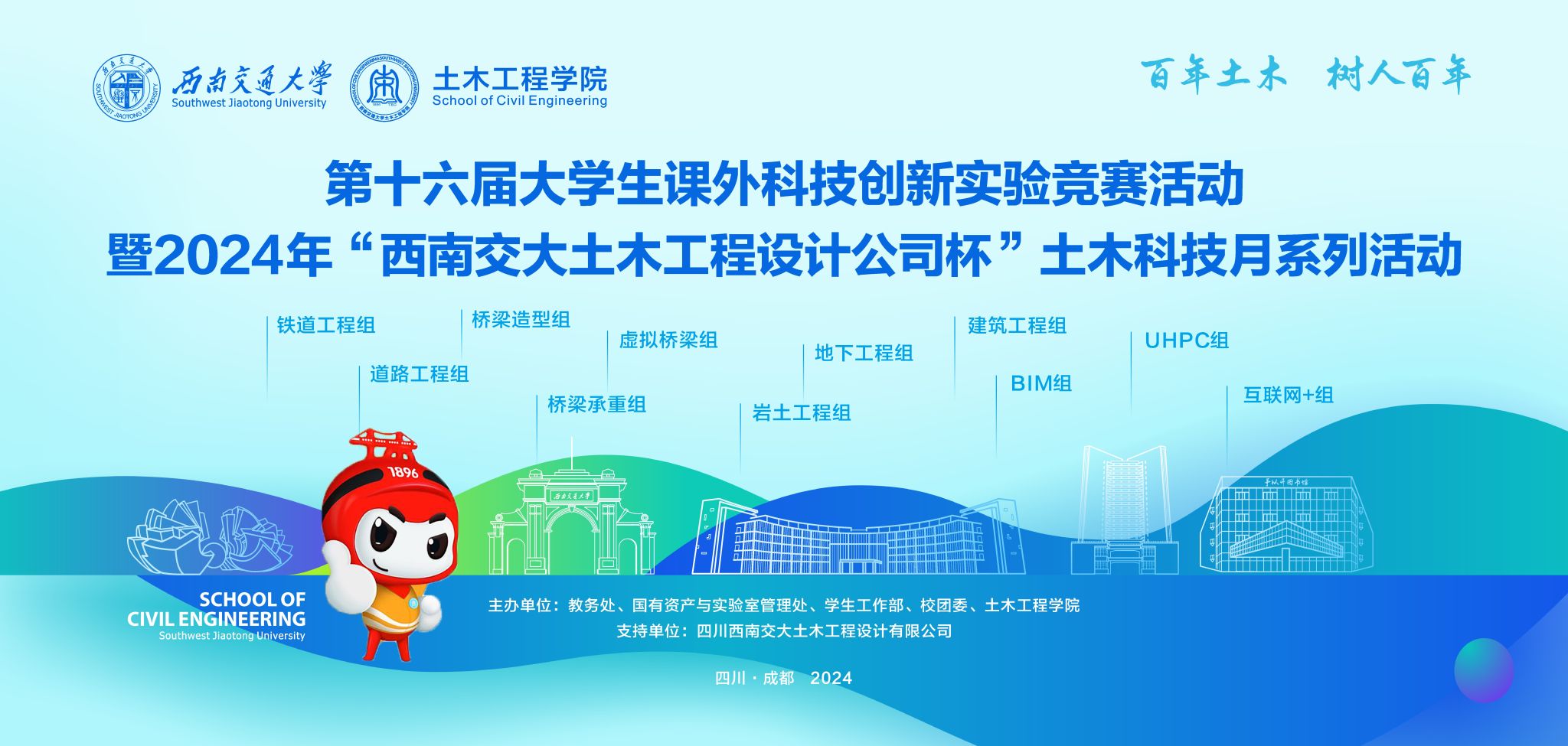 第十六届老员工课外科技创新实验竞赛活动暨2024年“西南交大土木工程设计公司杯”土木科技月系列活动是一项面向全校员工,以激发同学们参与学术科技活动的积极性,培养创新能力,浓厚学术氛围,提高综合素质为宗旨的创新设计大赛。现就赛事相关事宜通知如下: